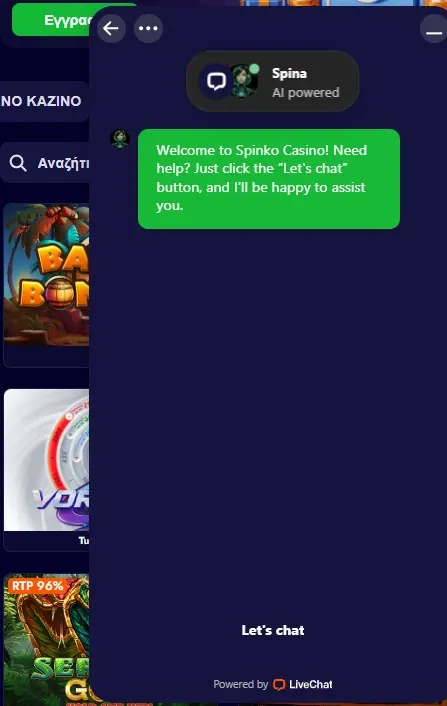 Παρέχουμε επίσης εργαλεία υπεύθυνου παιχνιδιού μέσω της εξυπηρέτησης πελατών. Μπορείτε να ζητήσετε αυτοαποκλεισμό ή κλείσιμο λογαριασμού για συγκεκριμένη περίοδο και μπορείτε να ζητήσετε από την υποστήριξη να εφαρμόσει όρια κατάθεσης ή όρια χρόνου συνεδρίας, επειδή αυτά δεν ρυθμίζονται απευθείας από τις ρυθμίσεις λογαριασμού. Προσφέρουμε επίσης περίοδο αποφόρτισης 7 ημερών κατόπιν αιτήματος. Αν ποτέ νιώσετε ότι το παιχνίδι δεν είναι πλέον διασκεδαστικό, χρησιμοποιήστε αυτά τα εργαλεία έγκαιρα και διατηρήστε τον έλεγχο του χρόνου και του budget σας. Όταν χρησιμοποιείτε το Spinko, θέλουμε το παιχνίδι σας να παραμένει μέσα σε σαφή όρια που εσείς επιλέγετε.