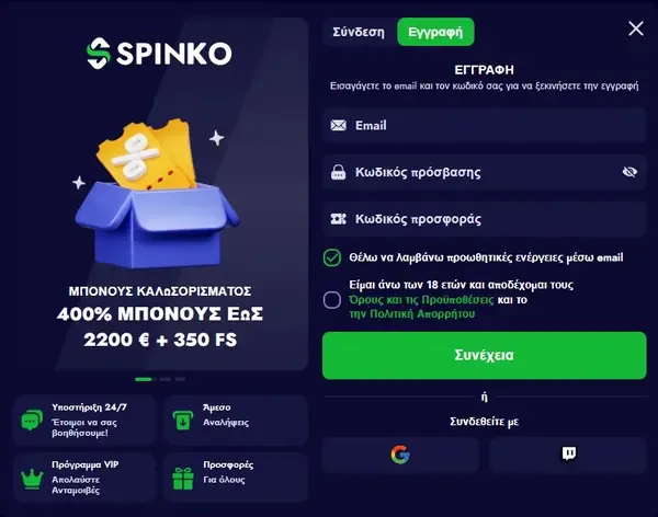 Βήματα Εγγραφής και Σύνδεσης Spinko