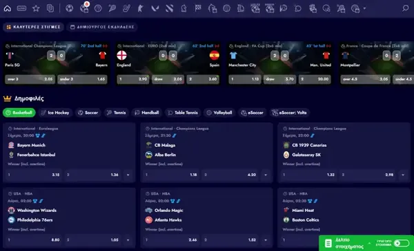 Sportsbook για Pre-Match και Live Στοιχήματα